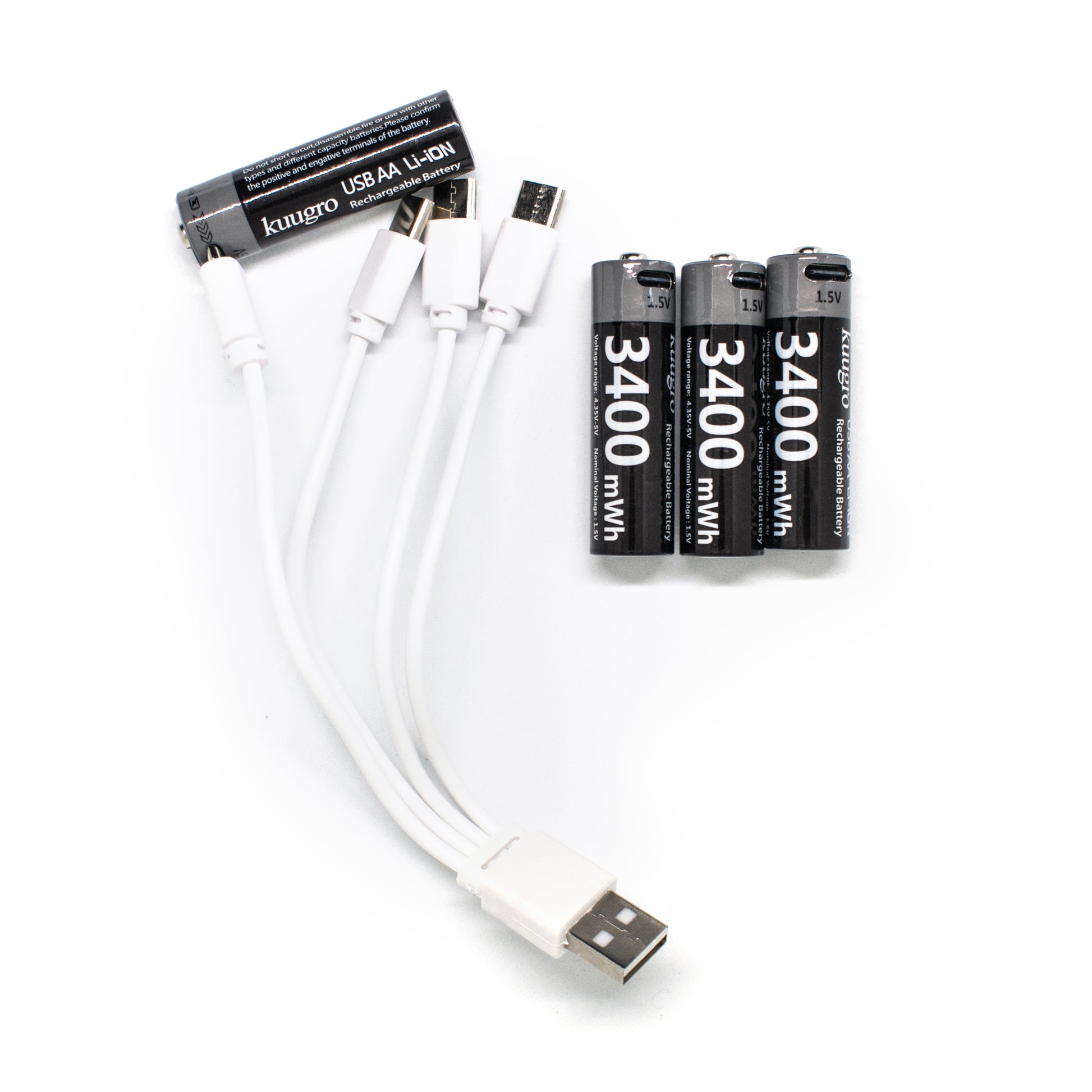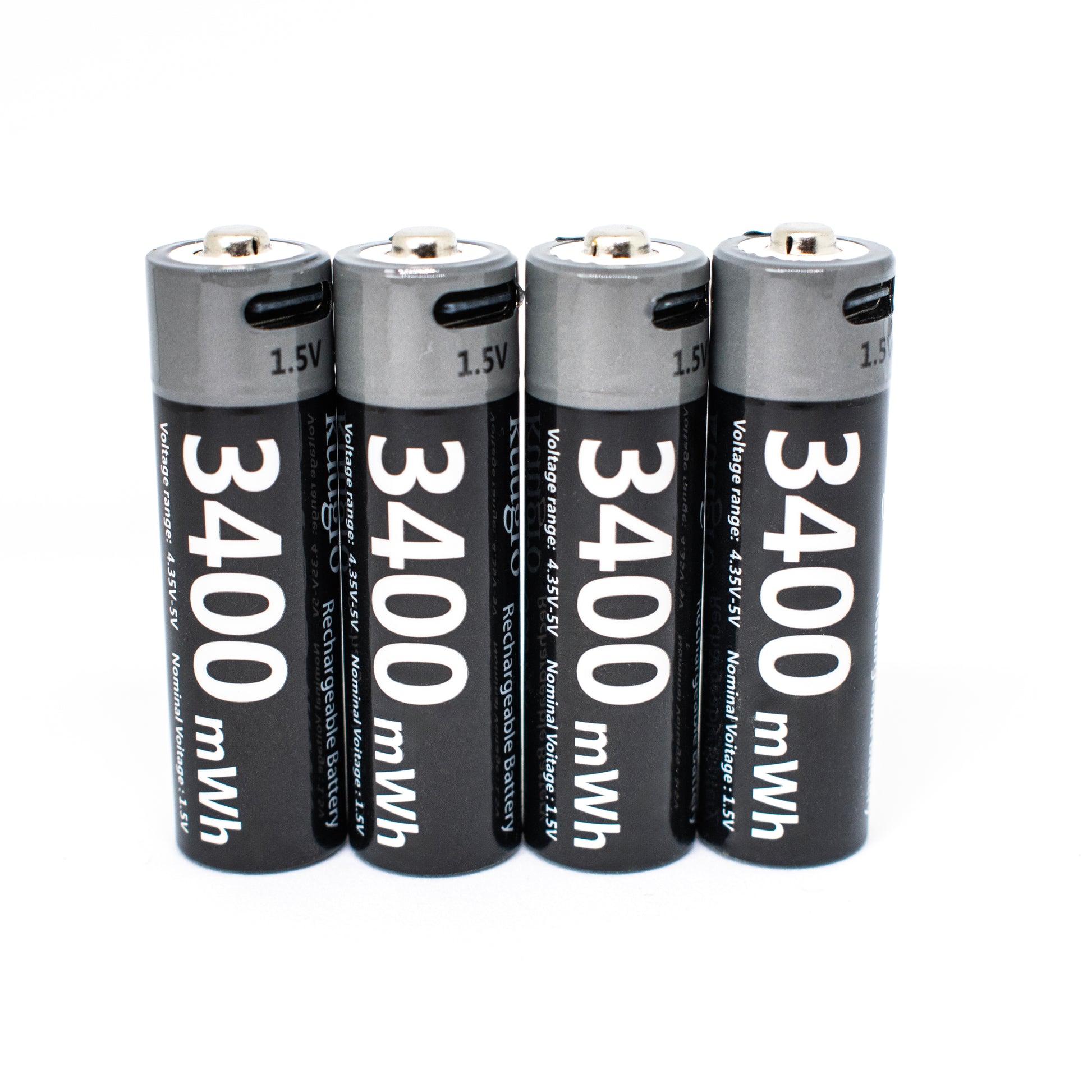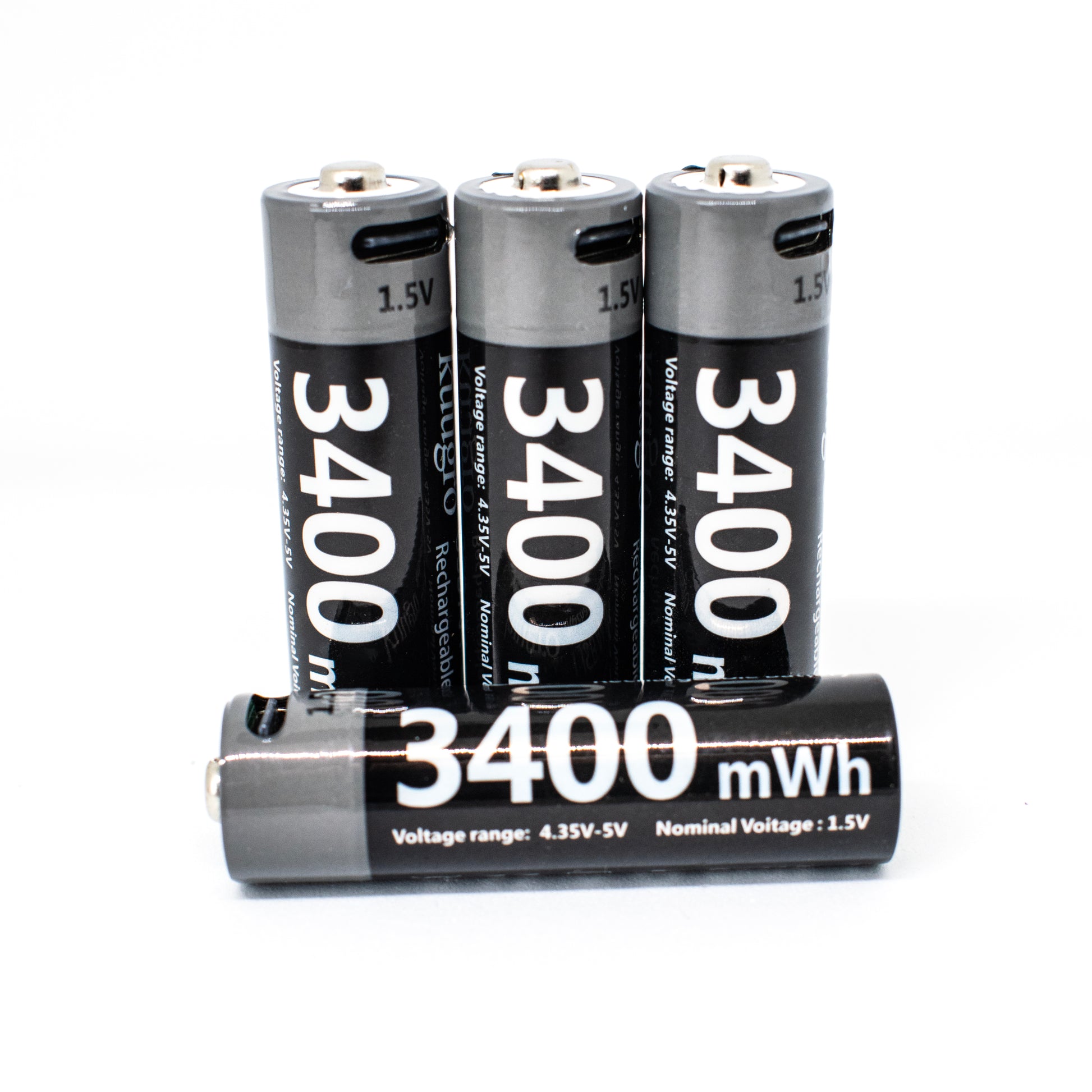 Oplaadbare batterijen AA 1.5V 3400 mWh - USB C - Li-Ion - Oplaadbare batterij - Recharging - Kuugro - 1.5V - 3400mWh
